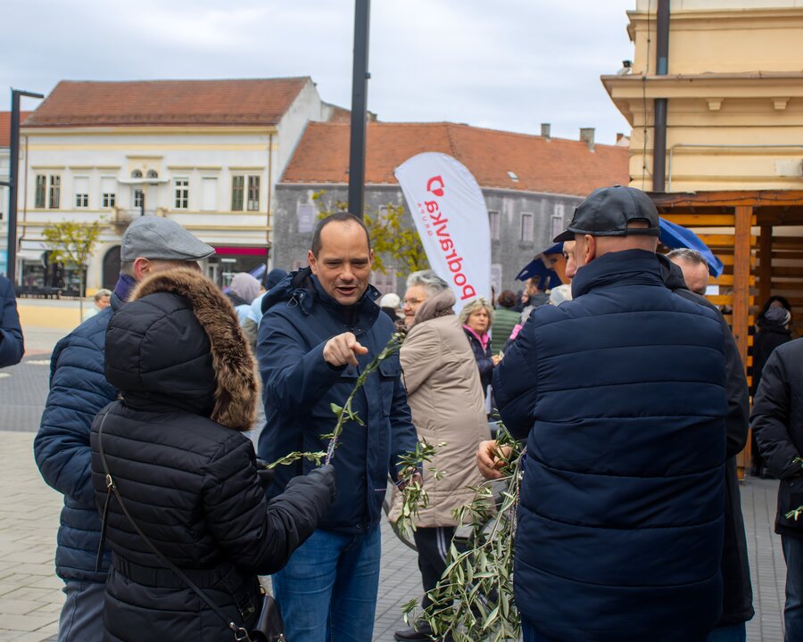 KOPRIVNICA - Ovo prijepodne na gradskom trgu u Koprivnici obilježili smo zajedništvom, toplinom i lijepom tradicijom uoči Cvjetnice. Članovi HDZ-a Koprivnica i Mladeži HDZ-a Koprivnica okupili su se kako bi dijelili maslinove grančice svojim sugrađanima, simbolizirajući mir, nadu i pripremu za nadolazeći Uskrs.